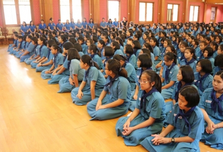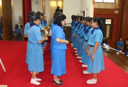 คณะครูผู้กำกับสมาชิกยุวกาชาดโรงเรียนเฉลิมขวัญสตรี จัดพิธีเข้าประจำหมู่สมาชิกยุวกาชาดระดับ 3 ชั้นปีที่่ 1 โดยมีพิธีมอบเข็มยุวกาชาดแก่สมาชิกยุวกาชาดชั้นมัธยมศึกษาปีที่่ 1 ประจำปีการศึกษา 2558 ณ หอประชุมราชานุเคราะห์ 3 โรงเรียนเฉลิมขวัญสตรี (ภาพ:อดิเรก/ข่าว:ประชาสัมพันธ์)
