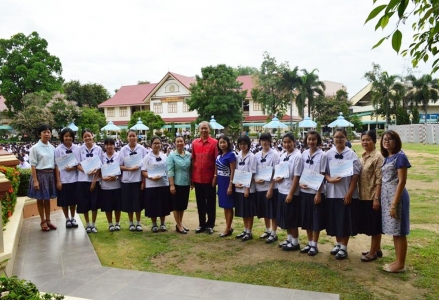 วันที่ 4 กันยายน 2558 นายศาศวัต ประทุมรัตน์ รองผู้อำนวยการโรงเรียนเฉลิมขวัญสตรี กล่าวชื่นชมและแสดงความยินดีกับนักเรียนโครงการ English Program โรงเรียนเฉลิมขวัญสตรี ที่ได้รับรางวัลจากการแข่งขัน มหกรรมวิชาการ เขตภาคเหนือ ครั้งที่ 8 "Northern Region EP/MEP Open House 2015" ซึ่งทำการแข่งขัน เมื่อวันที่ 13-14 สิงหาคม 2558 ณ โรงเรียนส่วนบุญโญปถัมภ์ จังหวัดลำพูน ดังนี้ 1. ด.ญ.บุญธิดา พุ่มอยู่ การแข่งขัน Story Telling เหรียญทองชนะเลิศ 2. ด.ญ.ณัฐธิดา ศรีภิรมย์ การแข่งขัน Singing Contest เหรียญทอง 3. ด.ญ.กนกพร วังศรีคูณ การแข่งขัน English Speech เหรียญทอง 4. ด.ญ. เบญจมาภรณ์ ชูเที่ยง ด.ญ. อาทิมา ณ นคร ด.ญ. ศรัณย์พร สีทัด การแข่งขัน Science Project เหรียญทอง 5. ด.ญ. พรภวิษย์ นนทะโคตร การแข่งขัน Spelling Bee เหรียญเงิน 6. ด.ญ. ภัทรญาดา ภัทรเศรษฐเศรณี ด.ญ. ชณิศญา ฉันทวรางค์ ด.ญ. กีรติกาญจน์ โรจนวิเชียร การแข่งขัน Math Project เหรียญเงิน) ในนามคณะครู บุคลากรและนักเรียนโรงเรียนเฉลิมขวัญสตรี ขอแสดงความชื่นชมยินดีมา ณ โอกาสนี้และขอขอบคุณคณะครูที่ส่งเสริม สนับสนุนเป็นกำลังใจให้นักเรียนมาโดยตลอด (ภาพ:กีรติ/ข่าว:ประชาสัมพันธ์)