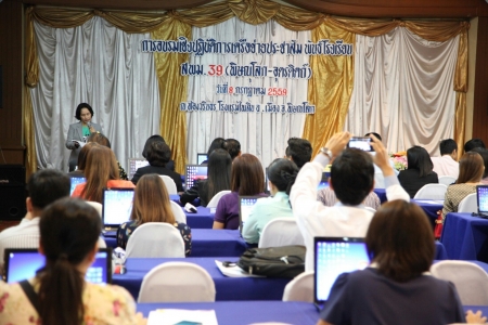 สำนักงานเขตพื้นที่การศึกษามัธยมศึกษา เขต 39 (พิษณุโลก-อุตรดิตถ์) จัดอบรมครูพีอาร์โรงเรียน ถ่ายภาพเขียนข่าวทางสมาร์ทโฟน เพื่อการติดต่อสื่อสารที่รวดเร็ว ที่โรงแรมไพลิน อ.เมือง จ.พิษณุโลก ดร.กิตติพงศ์ พิพัฒน์ศิวพงศ์ ผู้อำนวยการสำนักงานเขตพื้นที่การศึกษามัธยมศึกษา เขต 39 (พิษณุโลก-อุตรดิตถ์) เป็นประธานในการอบรมเชิงปฏิบัติการเครือข่ายประชาสัมพันธ์สถานศึกษาในสังกัดสำนักงานเขตพื้นที่การศึกษามัธยมศึกษา เขต 39 ที่สำนักงานเขตพื้นที่การศึกษามัธยมศึกษา เขต 39 เล็งเห็นว่าในยุคแห่งข้อมูลข่าวสารที่ทันสมัย การประชาสัมพันธ์ให้ความรู้ความเข้าใจประชาชนทั่วไป นับได้ว่ามีความสำคัญ โดยเฉพาะการประชาสัมพันธ์ที่รวดเร็ว ถูกต้องและมีประสิทธิภาพนั้น จะทำให้เกิดการติดต่อสื่อสารระหว่างหน่วยงานกับประชาชนหรือกลุ่มเป้าหมาย ซึ่งจะส่งผลให้เป็นการส่งเสริมความเข้าใจอันดีและถูกต้อง สำนักงานเขตพื้นที่การศึกษามัธยมศึกษา เขต 39 (พิษณุโลก-อุตรดิตถ์) ซึ่งมีโรงเรียนระดับมัธยมศึกษา ในเขตรับผิดชอบจังหวัดพิษณุโลก และจังหวัดอุตรดิตถ์ จำนวน 57 โรงเรียน และการมีพื้นที่โรงเรียนที่อยู่ห่างไกล โดยเฉพาะอย่างยิ่งเขตพื้นที่จังหวัดอุตรดิตถ์ ทำให้การติดต่อสื่อสารอาจมีความไม่คล่องตัว การใช้เทคโนโลยีมาช่วยในการสื่อสาร จึงมีความจำเป็นโดยเฉพาะการสื่อสารด้วยโซเชียลมีเดีย การใช้สมาร์ทโฟน รับข้อมูลข่าวสาร รายงานข่าวสารของโรงเรียนให้กับเขตพื้นที่การศึกษาฯ จึงเป็นเรื่องที่จำเป็นในปัจจุบัน ดังนั้น สำนักงานเขตพื้นที่การศึกษามัธยมศึกษา เขต 39 จึงจัดการอบรมเชิงปฏิบัติการ "เครือข่ายประชาสัมพันธ์" หลักสูตรที่เน้นจะเป็นการเขียนข่าว การถ่ายภาพนิ่ง ภาพวีดีโอด้วยสมาร์ทโพน พร้อมการเผยแพร่ ทางโซเชียลมีเดีย เช่น Facebook และ Line โดยลงพื้นที่ถ่ายทำ ปฏิบัติจริงในกิจกรรมของนักเรียนโรงเรียนเฉลิมขวัญสตรี อ.เมือง จ.พิษณุโลก อาทิ การจัดการเรียนการสอนภาษาอังกฤษเพื่อการสื่อสาร ด้านงานศิลปะ ด้านศิลปะดนตรี ด้านคหกรรม การทำร้านเครื่องดื่มภายในสถานศึกษา การทำอาหารคาวหวาน และการจัดดอกไม้สด โดยมีวิทยากรรายการครอบครัวข่าวเด็ก ชมรมนักประชาสัมพันธ์เขตพื้นที่การศึกษา มาให้ความรู้ในการอบรมครั้งนี้ มีผู้เข้ารับการอบรมเป็นข้าราชการครูและบุคลากรที่ทำหน้าที่ประชาสัมพันธ์ของสถานศึกษาในสังกัด จำนวน 57 โรงเรียน: วรางคณา อนันตะ / ภาพ-ข่าว นักประชาสัมพันธ์ชำนาญการพิเศษ สพม.39