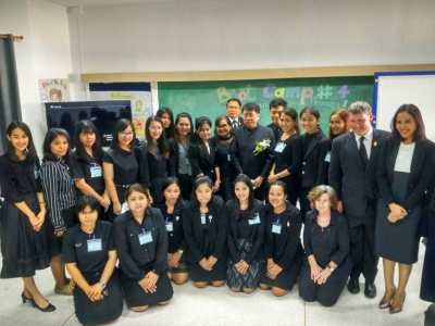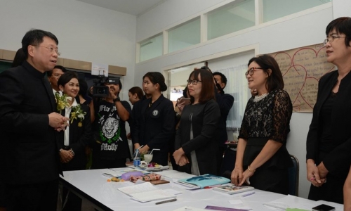 | วันศุกร์ที่ 24 กุมภาพันธ์ 2560 ส่งข่าวโดย: ผู้ดูแลระบบ หัวข้อข่าว : รมว.ศธ. ตรวจเยี่ยมการจัดการศึกษา ชมกิจกรรม Boot Camp และลงพื้นที่โรงเรียน ICU จ.พิษณุโลก นายแพทย์ธีระเกียรติ เจริญเศรษฐศิลป์ รัฐมนตรีว่าการกระทรวงศึกษาธิการ (รมว.ศธ.) พร้อมด้วย นายการุณ. สกุลประดิษฐ์ เลขาธิการคณะกรรมการการศึกษาขั้นพื้นฐาน นายบุญรักษ์ ยอดเพชร รองเลขาธิการคณะกรรมการการศึกษาขั้นพื้นฐานและผู้บริหารระดับ สพฐ. ลงพื้นที่เยี่ยมชมกิจกรรมการพัฒนาครูด้านการจัดการเรียนการสอนภาษาอังกฤษ (Boot camp) ระดับภูมิภาค ซึ่งสำนักงานคณะกรรมการการศึกษาขั้นพื้นฐาน (สพฐ.) ได้กำหนดจัดการอบรมพัฒนาครูผู้สอนภาษาอังกฤษระดับภูมิภาคเหนือล่าง ณ โรงเรียนเฉลิมขวัญสตรี จังหวัดพิษณุโลก