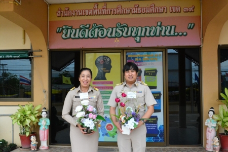 นายสุทธิดล พุทธรักษ์ รองผู้อำนวยการสำนักงานเขตพื้นที่การศึกษา สพม.39 พร้อมด้วยบุคลากรทางการศึกษา ร่วมต้อนรับนายวรศักดิ์ กันสุทธิ นักวิเคราะห์นโยบายและแผนชำนาญการ และนางสาวจำนงจิต วิทยานันท์ เจ้าพนักงานธุรการปฏิบัติงาร เดินทางมารับตำแหน่งใหม่ สพม.39