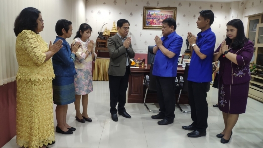นายศักดา สินมา ผู้อำนวยการโรงเรียนเฉลิมขวัญสตรี พร้อมด้วยทีมผู้บริหารโรงเรียนเฉลิมขวัญสตรี ขอพรเนื่องในโอกาสวันขึ้นปีใหม่ 2563 ดร.สุชน วิเชียรสรรค์ ผู้อำนวยการสำนักงานเขตพื้นที่การศึกษามัธยมศึกษา เขต 39 และดร.สุทธิดล พุทธรักษ์ รองผู้อำนวยการสำนักงานเขตพื้นที่การศึกษามัธยมศึกษา เขต 39 และสวัสดีปีใหม่บุคลากรทางการศึกษา สำนักงานเขตพื้นที่การศึกษามัธยมศึกษา เขต 39