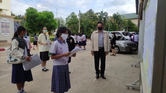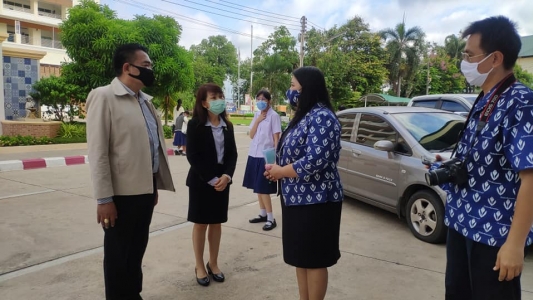 วันที่ 6 มิถุนายน 2563 ดร.สุชน วิเชียรสรรค์ ผู้อำนวยการสำนักงานเขตพื้นที่การศึกษามัธยมศึกษา เขต 39 มอบหมายให้ นายวณัฐพงศ์ ทองคำ รองผู้อำนวยการสำนักงานเขตพื้นที่การศึกษามัธยมศึกษา เขต 39,นางชวนชม นิ่มเจริญ ผู้อำนวยการกลุ่มส่งเสริมการจัดการศึกษา และนางโชติกา กุลจู นักวิชาการศึกษาชำนาญการ ตรวจสนามสอบคัดเลือกนักเรียนเข้าเรียนระดับชั้นมัธยมศึกษาปีที่ 1 โรงเรียนเฉลิมขวัญสตรี โดยโรงเรียนจัดจุดคัดกรองเพื่อวัดอุณหภูมิ และมีจุดบริการเจลแอลกอฮอล์ล้างมือ ตามมาตรการป้องกันการแพร่ระบาดของโรคติดเชื้อไวรัสโคโรนา (COVID-19) โรงเรียนเฉลิมขวัญสตรี