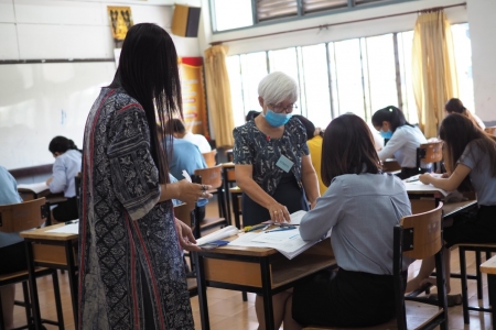วันนี้ ที่โรงเรียนเฉลิมขวัญสตรี และโรงเรียนพุทธชินราชพิทยา ซึ่งเป็นสนามสอบแข่งขันคัดเลือกบุคคล เพื่อบรรจุและแต่งตั้งเข้ารับราชการเป็นข้าราชการครูและบุคลากรทางการศึกษา ตำแหน่งครูผู้ช่วย รอบทั่วไป ปี พ.ศ. 2563 ของสำนักงานคณะกรรมการการศึกษาขั้นพื้นฐาน มีบัณฑิตที่จบการศึกษาจากทั่วประเทศกว่า 1,100 คน เดินทางมาสอบแข่งขันกันจำนวนมาก โดยมีหน่วย EOD ตชด.31 ค่ายเจ้าพระยาจักรี นำเครื่อง walk scan ตรวจค้นเครื่องมือสื่อสารและอุปกรณ์อิเลคทอนิกส์ ผู้เข้าสอบทุกคนขณะเดินขึ้นอาคารสอบ สแกนตรวจวัดอุณหภูมิ เจลล้างมือ ตามมาตรการป้องกันการแพร่ระบาดของโรคติดเชื้อไวรัสโคโรน่า 2019 พร้อมทั้งมีการตรวจสอบบัตรประจำตัวผู้สมัครสอบและตรวจค้นร่างกายอีกครั้งหนึ่งก่อนเข้าห้องสอบอย่างเข้มงวด โดยมีนายชนะ สุ่มมาตย์ ผู้เชี่ยวชาญสำนักงานคณะกรรมการการศึกษาขั้นพื้นฐาน ( สพฐ.) นายลือชัย ชูนาคา ศึกษาธิการจังหวัดพิษณุโลก นายสุชน วิเชียรสรรค์ ผู้อำนวยการสำนักงานเขตพื้นที่การศึกษามัธยมศึกษา เขต 39 นายพงษ์ชัย ไทยวรรณศรี ผู้อำนวยการสำนักงานเขตพื้นที่การศึกษาประถมศึกษาพิษณุโลก เขต 1 ประธานสนามสอบ นายศราวุธ คำแก้ว รองผู้อำนวยการสำนักงานเขตพื้นที่การศึกษามัธยมศึกษา เขต 39 และคณะผู้บริหาร ให้การต้อนรับ นายลือชัย ชูนาคา ศึกษาธิการจังหวัดพิษณุโลก กล่าวว่า การสอบครูผู้ช่วยครั้งนี้เปิดอัตราการบรรจุ 24 อัตรา สำนักงานศึกษาธิการจังหวัดพิษณุโลก จึงได้แต่งตั้งคณะกรรมการดำเนินการตามหลักเกณฑ์และวิธีการให้ครอบคลุม รวมถึงการสอดส่องดูแลและป้องกันการทุจริต หรือที่จะส่อไปในทางทุจริตหรือที่จะทำให้เกิดความไม่เห็นธรรม ขอให้เชื่อมั่นได้ว่า สำนักงานศึกษาธิการจังหวัดพิษณุโลก จะดำเนินการสอบแข่งขันเพื่อบรรจุและแต่งตั้ง บุคคลเข้ารับราชการเป็นข้าราชการครูและบุคลากรทางการศึกษา ตำแหน่งครูผู้ช่วย ให้มีความโปร่งใสและให้เกิดความยุติธรรมให้มากที่สุด" สำนักงานศึกษาธิการจังหวัดพิษณุโลก โดยมติคณะกรรมการศึกษาธิการจังหวัดพิษณุโลก (กศจ.พิษณุโลก) รับสมัครสอบแข่งขันเพื่อบรรจุและแต่งตั้งบุคคลเข้ารับราชการเป็นข้าราชการครูและบุคลากรทางการศึกษา ตำแหน่งครูผู้ช่วย ปี 2563 ตามกลุ่มวิชา 7 กลุ่มวิชา ดังนี้ 1) กลุ่มวิชาประถมศึกษา จำนวน 7 อัตรา 2) กลุ่มวิชาปฐมวัย/อนุบาลศึกษา จำนวน 3 อัตรา 3) กลุ่มวิชาดนตรีศึกษา จำนวน 7 อัตรา 4) กลุ่มวิชาภาษาไทย จำนวน 2 อัตรา 5) กลุ่มวิชาชีววิทยา จำนวน 1 อัตรา 6) กลุ่มวิชาคณิตศาสตร์ จำนวน 3 อัตรา และ 7) กลุ่มวิชาพลศึกษา จำนวน 1 อัตรา รวมทั้งสิ้น 24 อัตรา