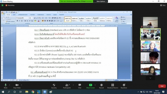 วันที่ 30 มิถุนายน 2564 ดร.สุชน วิเชียรสรรค์ ผู้อำนวยการสำนักงานเขตพื้นที่การศึกษามัธยมศึกษาพิษณุโลก อุตรดิตถ์ มอบหมายให้ กลุ่มบริหารงานการเงินและสินทรัพย์ ดำเนินการจัดประชุมคณะกรรมการกำหนดคุณลักษณะ และพิจารณาผลการจัดซื้อระบบคอมพิวเตอร์พร้อมอุปกรณ์สำหรับการเรียนการสอน รายการระบบคอมพิวเตอร์สำหรับโรงเรียนคุณภาพประจำตำบล : IC3 ประจำปีงบประมาณ พ.ศ.2564 รูปแบบออนไลน์ ผ่านระบบ Zoom meeting ด้วยสำนักงานเขตพื้นที่การศึกษามัธยมศึกษาพิษณุโลก อุตรดิตถ์ ได้รับงบประมาณจัดสรรรายจ่าย ประจำปีงบประมาณ พ.ศ.2564 งบลงทุน (ค่าครุภัณฑ์ ที่ดินและสิ่งก่อสร้าง) ครุภัณฑ์ที่มีราคาต่อหน่วยต่ำกว่า 1 ล้านบาท ครุภัณฑ์คอมพิวเตอร์สำหรับโรงเรียนคุณภาพประจำตำบล : IC3 ให้กับโรงเรียนในสังกัดสำนักงานเขตพื้นที่การศึกษามัธยมศึกษาพิษณุโลก อุตรดิตถ์ จำนวน 9 โรงเรียน โรงเรียนละ 1 ชุด ได้แก่ 1.โรงเรียนดอนทองวิทยา 2.โรงเรียนชุมแสงสงคราม อุดรคณารักษ์อุปถัมภ์ 3.โรงเรียนไทรย้อยพิทยาคม 4.โรงเรียนวังมะด่านพิทยาคม 5.โรงเรียนดงประคำพิทยาคม 6.โรงเรียนนาบัววิทยา 7.โรงเรียนสวนเมี่ยงวิทยา 8.โรงเรียนทุ่งกะโล่วิทยา 9.โรงเรียนลับแลพิทยาคม โดยนายคณิน อุดมความสุข ผู้อำนวยการกลุ่มส่งเสริมการศึกษาทางไกล เทคโนโลยีสารสนเทศและการสื่อสาร นายสมเจตน์ พันธ์พรม ผู้อำนวยการกลุ่มพัฒนาครูและบุคลากรทางการศึกษา เจ้าหน้าที่กลุ่มบริหารงานการเงินและสินทรัพย์ และครูผู้รับผิดชอบของโรงเรียนเข้าร่วมเป็นคณะกรรมการในครั้งนี้ ณ ห้องประชุมขวัญชนก สำนักงานเขตพื้นที่การศึกษามัธยมศึกษาพิษณุโลก อุตรดิตถ์