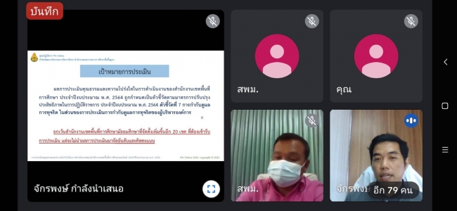 หัวข้อข่าว : สพม.พิษณุโลก อุตรดิตถ์ ร่วมประชุมชี้แจงแนวทางการประเมินคุณธรรมและความโปร่งใสในการดำเนินงานของสำนักงานเขตพื้นที่การศึกษาออนไลน์ (ITA Online)