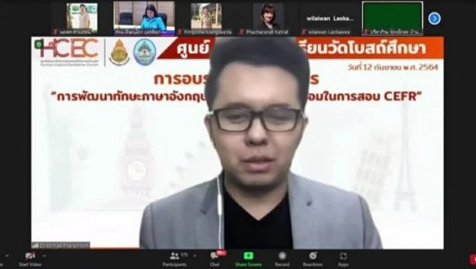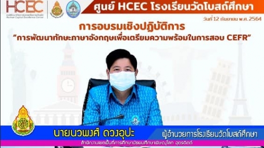 วันที่ 12 กันยายน 2564 ดร.สุชน วิเชียรสรรค์ ผู้อำนวยการสำนักงานเขตพื้นที่การศึกษามัธยมศึกษาพิษณุโลก อุตรดิตถ์ มอบหมายให้ ดร.จิรวรรณ สุรเสียง รองผู้อำนวยการสำนักงานเขตพื้นที่การศึกษามัธยมศึกษาพิษณุโลก อุตรดิตถ์ เป็นประธานเปิดการอบรมเชิงปฏิบัติการพัฒนาทักษะภาษาอังกฤษเพื่อเตรียมความพร้อมในการสอบ "CEFR" ในรูปแบบออนไลน์ ผ่านระบบ Zoom meeting โดยมีวัตถุประสงค์เพื่อให้ผู้เข้าร่วมอบรมมีความรู้ความสามารถด้านภาษาอังกฤษตามเกณฑ์ที่กำหนดในการใช้ภาษาตามกรอบอ้างอิง ( CEFR ) และเพื่อให้บุคลากรทางการศึกษาที่จะเข้าสอบวัดผลทักษะภาษาอังกฤษ ตามกรอบมาตรฐานทางความสามารถภาษาอังกฤษ (CEFR) ได้มีการเตรียมตัว เตรียมพร้อมและมีความมั่นใจในการเข้าสอบมากยิ่งขึ้น ผู้เข้ารับการอบรมประกอบด้วย ครูผู้สอนภาษาอังกฤษในโรงเรียนต่าง ๆ ที่สังกัดอยู่ในเขตพื้นที่รับผิดชอบของศูนย์ HCEC โรงเรียนวัดโบสถ์ศึกษา อำเภอวัดโบสถ์ อำเภอพรหมพิราม อำเภอนครไทย อำเภอชาติตระการ (176 โรงเรียน) จำนวน 200 คน จัดโดย ศูนย์พัฒนาศักยภาพบุคคลเพื่อความเป็นเลิศ (Human Capital Excellence Center : HCEC) โรงเรียนวัดโบสถ์ศึกษา