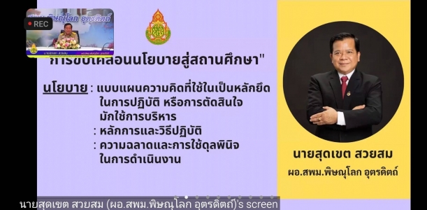 หัวข้อข่าว : ผอ.สพม.พิษณุโลก อุตรดิตถ์ บรรยายให้ความรู้ให้กับผู้เข้ารับการพัฒนาข้าราชการครูและบุคลากรทางการศึกษาก่อนแต่งตั้งให้ดำรงตำแหน่งรองผู้อำนวยการสถานศึกษา ผ่านระบบ Zoom meeting