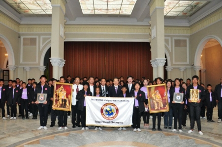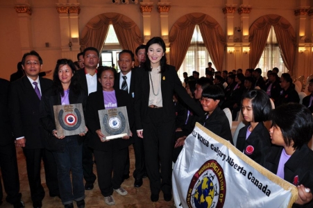 วันที่ 17 กรกฎาคม 2555 ดร.สมเกียรติ บุญรอด ผู้อำนวยการสำนักงานเขตพื้นที่การศึกษามัธยมศึกษา เขต 39 พาเยาวชนวงโยธวาทิตพิษณุโลก เข้าพบ นางสาวยิ่งลักษณ์ ชินวัตร นายกรัฐมนตรี ณ ทำเนียบรัฐบาล เพื่อขอบคุณที่สนับสนุนงบประมาณในการเดินทางไปแข่งขัน ณ ประเทศ แคนนาดา จนได้รางวัลชนะเลิศ แชมป์โลกระดับจูเนียร์ กลับมาประเทศไทย /เครือข่ายประชาสัมพันธ์ : ภาพ ,พรทิพย์ : ข่าว