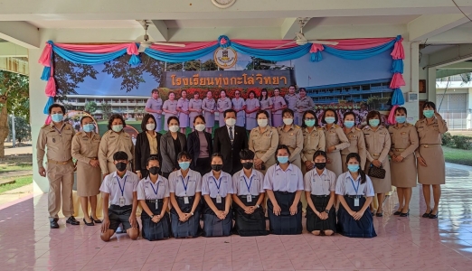 วันที่ 24 มกราคม 2565 นายสุดเขต สวยสม ผู้อำนวยการสำนักงานเขตพื้นที่การศึกษามัธยมศึกษาพิษณุโลก อุตรดิตถ์ พร้อมด้วยนางเปรมฤดี เกลาพิมาย ผู้อำนวยการกลุ่มนโยบายและแผน และนางสาวสุทธิลักษณ์ ภูริชัยพัฒน์ ผู้อำนวยการกลุ่มนิเทศ ติดตามและประเมินผลการจัดการศึกษา ลงพื้นที่ตรวจเยี่ยมโรงเรียนทุ่งกะโล่วิทยา เพื่อให้กำลังใจผู้บริหาร คณะครูและบุคลากรทางการศึกษา ในการปฏิบัติงานภายใต้สถานการณ์การแพร่ระบาดของโรคติดเชื้อไวรัสโคโรนา 2019 (covid-19) โดยยืดตามนโยบายของ กระทรวงศึกษาธิการ สำนักงานคณะกรรมการการศึกษาขั้นพื้นฐาน และสำนักงานเขตพื้นที่การศึกษามัธยมศึกษาพิษณุโลก อุตรดิตถ์ ตลอดทั้งติดตามการดำเนินงานการจัดการเรียนการสอนในภาคเรียนที่ 2 ปีการศึกษา 2564 และชื่นชมผู้บริหาร คณะครูและบุคลากรทางการศึกษาที่ร่วมมือกันในการวางแผนงาน การนำนโยบายทั้ง 4 มิติมาปรับใช้ทั้งในด้านความปลอดภัย ด้านโอกาส ด้านประสิทธิภาพและด้านคุณภาพ การเตรียมความพร้อมสำหรับการจัดการเรียนการสอน ส่งผลให้การบริหารงานภายในโรงเรียนเป็นไปอย่างมีประสิทธิภาพ และร่วมขับเคลื่อนการบริหารการศึกษาตามจุดเน้นของ สำนักงานคณะกรรมการการศึกษาขั้นพื้นฐาน และสำนักงานเขตพื้นที่การศึกษามัธยมศึกษาพิษณุโลก อุตรดิตถ์ โดยมีนางสาวอัฉราภรณ์ เสวันนา ผู้อำนวยการโรงเรียนทุ่งกะโล่วิทยา คณะครู นักเรียนโรงเรียนทุ่งกะโล่วิทยา ร่วมให้ข้อมูลในครั้งนี้