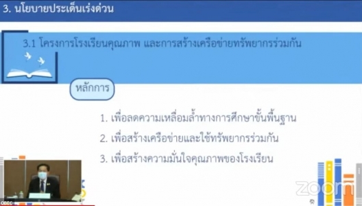 หัวข้อข่าว : สพม.พิษณุโลก อุตรดิตถ์ ร่วมประชุมชี้แจงและสร้างความเข้าใจในการขับเคลื่อนนโยบาย จุดเน้นสำนักงานคณะกรรมการการศึกษาขั้นพื้นฐานและนโยบายของรัฐมนตรีว่าการกระทรวงศึกษาธิการ ประจำปีงบประมาณ พ.ศ. 2565 ผ่านระบบ ZOOM Meeting