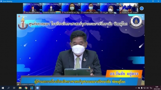 วันที่ 29 มีนาคม 2565 เวลา 09.00 น. ที่ห้องประชุมชินเรศ สำนักงานเขตพื้นที่การศึกษามัธยมศึกษาพิษณุโลก อุตรดิตถ์ นายสุดเขต สวยสม ผู้อำนวยการสำนักงานเขตพื้นที่การศึกษามัธยมศึกษาพิษณุโลก อุตรดิตถ์ เป็นประธานเปิดกิจกรรมนำเสนอผลการดำเนินงานและแลกเปลี่ยนเรียนรู้ โครงการขยายผลองค์ความรู้ทางวิชาการและวิธีจัดการเรียนการสอนของโรงเรียนเครือข่าย จำนวน 10 โรงเรียน กับศูนย์ขยายผลฯ โรงเรียนวิทยาศาสตร์จุฬาภรณราชวิทยาลัย พิษณุโลก วัตถุประสงค์ในการจัดกิจกรรมในครั้งนี้ เพื่อส่งเสริมให้ครูและบุคลากรทางการศึกษาได้ร่วมแลกเปลี่ยนเรียนรู้ ผ่านกระบวนการชุมชนแห่งหารเรียนรู้ทางวิชาชีพ (Professional Learning Community : PLC) ด้านการจัดการเรียนการสอนวิทยาศาสตร์และคณิตศาสตร์ การจัดทำสื่อการเรียนการสอน การวัดและประเมินผลการเรียนรู้ รวมถึงการนำเสนอผลการดำเนินงานของโรงเรียนเครือข่ายเกี่ยวกับการบริหารจัดการด้านการจัดการเรียนการสอนทางคณิตศาสตร์และวิทยาศาสตร์ของโรงเรียน อันเกิดจากการเข้าร่วมโครงการฯ ทั้งนี้ เพื่อเป็นการสะท้อนถึงความสำเร็จ รวมถึงปัญหา-อุปสรรคต่างๆ ซึ่งสถานศึกษา ครูและบุคลากรทางการศึกษาจะสามารถนำความรู้และประสบการณ์จากการเข้าร่วมโครงการไปปรับประยุกต์ใช้ในการพัฒนางานหรือโครงการให้ดียิ่งขึ้นรวมถึงสะท้อนผลำปยังโรงเรียนมหิดลวิทยานุสรณ์ซึ่งเป็นเจ้าของโครงการต่อไป