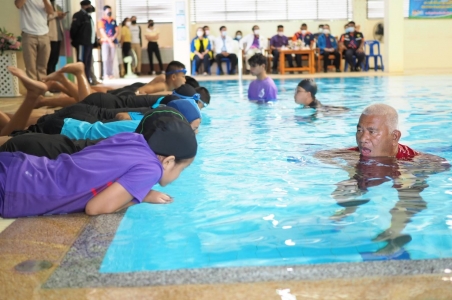 หัวข้อข่าว : พิธีเปิดโครงการพัฒนาและส่งเสริมทักษะพื้นฐานด้าน กีฬาว่ายน้ำ ประจำปี 2565