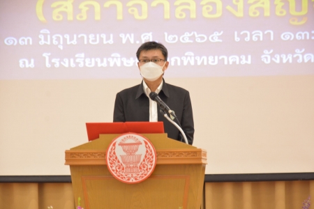 วันที่ 13 มิถุนายน 2565 เวลา 13.00 น. นายสุดเขต สวยสม ผู้อำนวยการสำนักงานเขตพื้นที่การศึกษามัธยมศึกษาพิษณุโลก อุตรดิตถ์ ร่วมกล่าวต้อนรับ นายพงศ์กิตติ์ อรุณภักดีสกุล ที่ปรึกษาด้านการเมือง การปกครองและการจัดการ และผู้บริหาร เจ้าหน้าที่จากสำนักงานเลขาธิการวุฒิสภา ในโอกาสจัดกิจกรรมโครงการเผยแพร่ความรู้เกี่ยวกับการเมือง การปกครอง บทบาทหน้าที่และอำนาจของวุฒิสภาสู่เยาวชนในสถาบันการศึกษา (สภาจำลองสัญจร) ให้กับนักเรียนโรงเรียนพิษณุโลกพิทยาคม ด้วยนายอัมพร พินะสา เลขาธิการคณะกรรมการการศึกษาขั้นพื้นฐาน ได้แจ้งให้สำนักงานเขตพื้นที่การศึกษา ดำเนินการขับเคลื่อนนโยบายเร่งด่วน สพฐ.ปี 2565 จำนวน 10 เรื่อง ซึ่ง การศึกษากับการพัฒนาประชาธิปไตย โดยเน้นการดำเนินงานร่วมกับสภานักเรียนเป็นงานนโยบายเร่งด่วนที่สำนักงานคณะกรรมการการศึกษาขั้นพื้นฐาน ที่ต้องให้สถานศึกษา ปลูกฝังทัศนคติ ค่านิยมความเป็นประชาธิปไตยแก่นักเรียน ผ่านกระบวนการสภานักเรียนอย่างสร้างสรรค์ ที่ได้จัดทำโครงการสภานักเรียนมาอย่างต่อเนื่อง เพื่อพัฒนานักเรียนให้เรียนรู้บทบาทหน้าที่ตามวิถีประชาธิปไตย ซึ่งกิจกรรมสภานักเรียนจะช่วยให้นักเรียนเกิดความคุ้นเคยกับสังคม มีกลไกกระบวนการดำเนินงานด้วยกระบวนการอย่างสร้างสรรค์ ได้รับการปลูกฝังทัศนคติ ค่านิยมความเป็นประชาธิปไตย สอดคล้องกับนโยบายค่านิยมหลักของคนไทย 12 ประการ มีความจำเป็นที่จะต้องเริ่มจากการปลูกฝังความคิด และทักษะการดำรงชีวิตของเด็กเป็นพื้นฐาน การดำเนินงานโครงการสภานักเรียน เป็นอีกแนวทางหนึ่งในการปลูกฝังให้เด็กและเยาวชนไทย ซึ่งถือเป็นทรัพยากรของชาติ ที่มีค่ายิ่ง จะต้องได้รับการพัฒนาและปลูกฝังพื้นฐานการปกครองในระบอบประชาธิปไตยมีพระมหากษัตริย์ทรงเป็นประมุข ให้เต็มศักยภาพ เพื่อที่จะเติบโตเป็นกำลังสำคัญของชาติ สามารถพัฒนาประเทศให้เจริญก้าวหน้า เทียบเท่านานาอารยประเทศ รวมทั้งการมีจิตอาสาและพัฒนาตนเอง อย่างเต็มตามศักยภาพบนพื้นฐานหลักธรรมาภิบาลให้สอดคล้องต่อค่านิยมหลักของคนไทย 12 ประการ ตามนโยบายของรัฐบาลปัจจุบัน