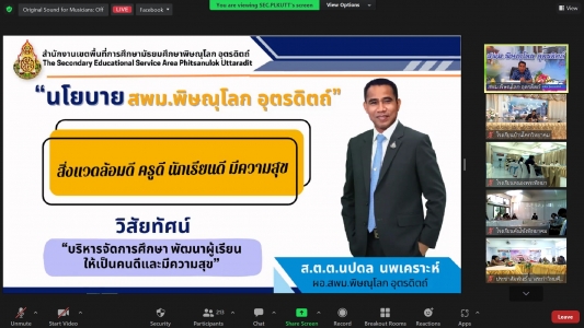 วันพฤหัสบดีที่ 26 ตุลาคม 2566 เวลา 09.00 น. ส.ต.ต.ดร.นปดล นพเคราะห์ ผู้อำนวยการสำนักงานเขตพื้นที่การศึกษามัธยมศึกษาพิษณุโลก อุตรดิตถ์ เป็นประธานมอบนโยบายและการเตรียมความพร้อมก่อนเปิดภาคเรียนที่ 2 ปีการศึกษา 2566 ของสำนักงานเขตพื้นที่การศึกษามัธยมศึกษาพิษณุโลก อุตรดิตถ์ ในรูปแบบออนไลน์ผ่านระบบ Zoom Meeting พร้อมมอบนโยบายของ สำนักงานเขตพื้นที่การศึกษามัธยมศึกษาพิษณุโลก อุตรดิตถ์ สิ่งแวดล้อมดี ครูดี นักเรียนดี มีความสุข รวมถึงวิสัยทัศน์ บริหารจัดการศึกษา พัฒนาผู้เรียน ให้เป็นคนดีและมีความสุข" ซึ่งสอดคล้องกับแนวนโยบายของกระทรวงศึกษาธิการ และแนวทางการเตรียมความพร้อมก่อนเปิดภาคเรียนที่ 2/2566 โดยได้รับเกียรติจาก ดร.บุญรักษ์ ยอดเพชร ประธาน อ.ก.ค.ศ. เขตพื้นที่การศึกษามัธยมศึกษาพิษณุโลก อุตรดิตถ์ บรรยายพิเศษในเรื่องการบริหารจัดการในสถานศึกษา เพื่อเป็นแนวทางในการปฏิบัติหน้าที่ตามความรับผิดชอบที่เหมาะสมของผู้บริหารสถานศึกษา คณะครู และบุคลากรทางการศึกษา ผู้เข้าร่วมประชุมประกอบด้วย ดร.จิรวรรณ สุรเสียง ว่าที่ ร.ต.ดร.สมจิตร รอดเรือง รองผู้อำนวยการสำนักงานเขตพื้นที่การศึกษามัธยมศึกษาพิษณุโลก อุตรดิตถ์ รองผู้อำนวยการสำนักงานเขตพื้นที่การศึกษามัธยมศึกษาพิษณุโลก อุตรดิตถ์ ผู้อำนวยการกลุ่ม/หน่วย และเจ้าหน้าที่ที่เกี่ยวข้อง ผู้บริหารสถานศึกษา ข้าราชการครูและบุคลากรทางการศึกษา เข้าร่วมประชุมในครั้งนี้ ณ ห้องประชุมขวัญชนก สำนักงานเขตพื้นที่การศึกษามัธยมศึกษาพิษณุโลก อุตรดิตถ์ 📷อลิษา ประทุมโพธิ์:ภาพ/ข่าว