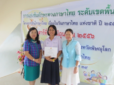 เมื่อวันเสาร์ที่ ๑๕ มิถุนายน ๒๕๕๖ สำนักงานเขตพื้นที่การศึกษามัธยมศึกษา เขต ๓๙ โดย นางสาวพิสมร วัยวุฒิ ศึกษานิเทศก์ ร่วมกับคณะกรรมการศูนย์พัฒนากลุ่มสาระการเรียนรู้ภาษาไทย จังหวัดพิษณุโลก และอุตรดิตถ์ ได้จัดการแข่งขันทักษะภาษาไทย ณ โรงเรียนพุทธชินราชพิทยา เพื่อคัดเลือกตัวแทนเขตพื้นที่การศึกษา เข้าแข่งขันระดับประเทศ และมีนักเรียนได้รับรางวัลชนะเลิศ ใน ๓ กิจกรรม ดังนี้ กิจกรรมที่ ๑ รางวัล เกียรติบัตรระดับเหรียญทอง การแข่งขันแต่งกลอนสุภาพ ระดับ ม.๑-๓ ประเภทบุคคล ได้แก่ - เด็กหญิงปณัศรินทร์ พรรณเพียร โรงเรียนเฉลิมขวัญสตรี จังหวัดพิษณุโลก กิจกรรมที่ ๒ รางวัล เกียรติบัตรระดับเหรียญทอง การอ่านเอาเรื่อง ระดับ ม.๓ - ๔ ประเภทบุคคล ได้แก่ - นางสาวกาญจนา พุกน้อย โรงเรียนพิชัย จังหวัดอุตรดิตถ์ กิจกรรมที่ ๓ รางวัล เกียรติบัตรระดับเหรียญทอง การเขียนรายงานเชิงวิชาการ ระดับ ม.๔ -๖ ประเภท ทีมละ ๒ คน ได้แก่ - นายจิติชัย พัชรเดชากร โรงเรียนพิษณุโลกพิทยาคม จังหวัดพิษณุโลก - นายชีวรัตน์ คุ้มคำ โรงเรียนพิษณุโลกพิทยาคม จังหวัดพิษณุโลก สำนักงานเขตพื้นที่การศึกษามัธยมศึกษา เขต ๓๙ ขอแสดงความชื่นชมกับนักเรียนทุกคน ที่เข้าร่วมการกิจกรรมดังกล่าว และขอแสดงความยินดีกับนักเรียนที่ได้รับรางวัลจากการแข่งขัน ตลอดจน ขอชื่นชมและเป็นกำลังใจให้โรงเรียนได้มีการพัฒนาการเรียนการสอนภาษาไทยอย่างต่อเนื่อง