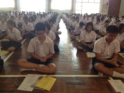 ดร.สมเกียรติ บุญรอด ผอ.สพม.39 กล่าวให้โอวาส แก่นักเรียนชั้น ม.5-6 โรงเรียนพุทธชินราชพิทยา ในกิจกรรมพัฒนาครูและนักเรียนสู่โรงเรียนสุจริต