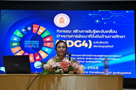 วันจันทร์ที่ 25 สิงหาคม 2568 เวลา 08.00 น. ดร.ศิริวรรณ ขวัญมุข ผู้อำนวยการสำนักงานเขตพื้นที่การศึกษามัธยมศึกษาพิษณุโลก อุตรดิตถ์ มอบหมายให้ นายอิทธิพงษ์ ตั้งสกุลเรืองไล ศึกษานิเทศก์ชำนาญการพิเศษ และนายเสฎฐวุฒิ สีแดง นักวิเคราะห์นโยบายและแผนปฏิบัติการ เข้าร่วมกิจกรรม สร้างการรับรู้และขับเคลื่อนเป้าหมายการพัฒนาที่ยั่งยืนด้านการศึกษา (SDG4) ระดับจังหวัด จังหวัดอุตรดิตถ์ เพื่อให้ตัวแทนหน่วยงานทางการศึกษาทุกแห่งในจังหวัดอุตรดิตถ์ร่วมกันสะท้อนปัญหา อุปสรรค และแนวทางการพัฒนาตามเป้าหมายการพัฒนาที่ยั่งยืนด้านการศึกษา (SDG4) ในระดับจังหวัด ซึ่งจะนำไปสู่การจัดทำแผนหรือแนวทางพัฒนาด้านการศึกษาต่อไป โดยมีนางอัญชลี วัฒนาสกุลเกียรติ ศึกษาธิการจังหวัดอุตรดิตถ์ เป็นประธานในพิธี ดำเนินการโดยวิทยากร ผศ.ดร.ชรินทร์ มั่งคั่ง อาจารย์ประจำคณะศึกษาศาสตร์ มหาวิทยาลัยเชียงใหม่ และคณะ ณ ห้องประชุมบอลรูม โรงแรมสีหราช อำเภอเมืองอุตรดิตถ์ จังหวัดอุตรดิตถ์