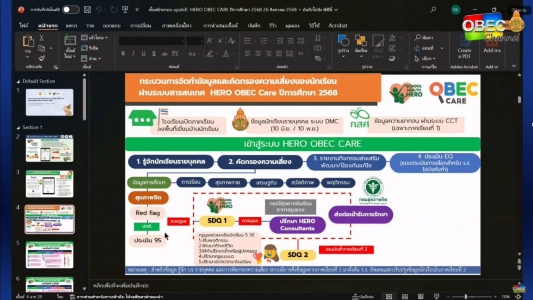 วันอังคารที่ 26 สิงหาคม 2568 เวลา 13.00 น. ดร.ศิริวรรณ ขวัญมุข ผู้อำนวยการสำนักงานเขตพื้นที่การศึกษามัธยมศึกษาพิษณุโลก อุตรดิตถ์ มอบหมายให้นางสาวกัญฐณา ชัยรัตน์ นางสาวศิริจันทรา เมฆี และนางสาวกรรณิการ์ เพ็งปรางค์ เจ้าหน้าที่กลุ่มส่งเสริมการจัดการศึกษาเข้าร่วมประชุมทางไกลชี้แจงแนวทางการดำเนินงานการแนะแนวสุขภาพจิตนักเรียนและการดูแลช่วยเหลือนักเรียนในสถานศึกษา สังกัดสำนักงานคณะกรรมการการศึกษาขั้นพื้นฐาน และพัฒนาผู้รับผิดชอบงาน ระดับเขตพื้นที่การศึกษาและสถานศึกษา ปีการศึกษา 2568 เพื่อขับเคลื่อนการสร้างความเข้มแข็งระบบแนะแนว การชี้แนะ (Coaching) และการดูแลสุขภาพกายและสุขภาพจิตของผู้เรียน รวมทั้งให้ความสำคัญกับการลดภาระครู บุคลากรทางการศึกษา จึงได้มีการเชื่อมโยงระบบการดูแลสุขภาพจิตนักเรียนและระบบสุขภาพจิตโรงเรียนวิถีใหม่ (School Health HERO) และระบบการดูแลช่วยเหลือนักเรียน (OBEC CARE) เพื่อให้ผู้เรียนได้รับการเฝ้าระวัง การแนะแนว การให้การปรึกษาและดูแลช่วยเหลือนักเรียนอย่างรอบด้านอย่างมีประสิทธิภาพ ผ่านระบบ Zoom Meeting ณ ห้องศรีวังจันทร์ สพม. พิษณุโลก อุตรดิตถ์