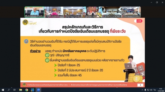 วันจันทร์ที่ 15 กันยายน 2568 ดร.ศิริวรรณ ขวัญมุข ผู้อำนวยการสำนักงานเขตพื้นที่การศึกษามัธยมศึกษาพิษณุโลก อุตรดิตถ์ มอบหมายให้ ว่าที่ร้อยตรี ดร.สมจิตร รอดเรือง รองผู้อำนวยการสำนักงานเขตพื้นที่การศึกษามัธยมศึกษาพิษณุโลก อุตรดิตถ์ พร้อมด้วย นางเตือนใจ พรมมี ผู้อำนวยการกลุ่มบริหารงานบุคคล และเจ้าหน้าที่ที่เกี่ยวข้อง ร่วมประชุมสัมมนาเพื่อขยายผลการกำกับ ติดตามผลการดำเนินการใช้ตำแหน่งตามกรอบอัตรากำลังที่ ก.ค.ศ. กำหนด และ การดำเนินงานตามหลักเกณฑ์และวิธีการบริหารงานบุคคลของตำแหน่งบุคลากรทางการศึกษาอื่นตามมาตรา 38 ค.(2) ในเขตพื้นที่การศึกษา ในรูปแบบออนไลน์ผ่านระบบ Zoom Meeting เพื่อให้การบริหารงานบุคคลในสังกัดเป็นไปอย่างมีประสิทธิภาพและสอดคล้องกับหลักเกณฑ์ที่กำหนด ณ ห้องประชุม PLC Center สำนักงานเขตพื้นที่การศึกษามัธยมศึกษาพิษณุโลก อุตรดิตถ์
