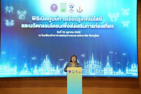 วันพฤหัสบดีที่ 23 ตุลาคม 2568 ดร.ศิริวรรณ ขวัญมุข ผู้อำนวยการสำนักงานเขตพื้นที่การศึกษามัธยมศึกษาพิษณุโลก อุตรดิตถ์ มอบหมายให้ ดร.จิรวรรณ สุรเสียง รองผู้อำนวยการสำนักงานเขตพื้นที่การศึกษามัธยมศึกษาพิษณุโลก อุตรดิตถ์ ร่วมพิธีเปิดศูนย์การเรียนรู้เทคโนโลยีเเละนวัตกรรมโดรนเพื่อส่งเสริมการท่องเที่ยว โครงการ"การพัฒนาสมรรถนะบุคลากรและเสริมศักยภาพของพื้นที่โดยการจัดตั้งศูนย์การเรียนรู้เทคโนโลยี โดรนด้านการท่องเที่ยวเละด้านการเกษตร" และกล่าวตอนรับ โดยมี ดร.วิภารัตน์ ดีอ่อง ผู้อำนวยการสำนักงานการวิจัยแห่งชาติ (วช.) เป็นประธานในพิธี พร้อมด้วย คณะผู้ทรงคุณวุฒิจาก วช. นายกสมาคมกีฬาเครื่องบินจำลองและวิทยุบังคับ ศึกษานิเทศก ผู้บริหารโรงเรียน คณะครู นักเรียน และผู้สื่อมวลชน เข้าร่วมกิจกรรมเปิดศูนย์การเรียนรู้ฯ พร้อมทั้งให้ผู้เข้าร่วมเยี่ยมชมศูนย์การเรียนรู้และการสาธิตเทคโนโลยีโดรน ณ โรงเรียนวิทยาศาสตร์จุฬาภรณราชวิทยาลัย พิษณุโลก