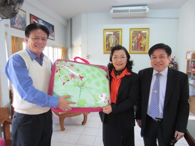 นายวันชาติ อ่วมแจง รองผู้อำนวยการสำนักงานเขตพื้นที่การศึกษามัธยมศึกษา เขต 39 และนายณุกูล เดือนหงาย รองผู้อำนวยการสำนักงานเขตพื้นที่การศึกษามัธยมศึกษา เขต 39 ได้มอบผ้าห่มและของขวัญปีใหม่ให้แก่ศึกษานิเทศก์ และเจ้าหน้าที่ศูนย์ประสานงานจังหวัดอุตรดิตถ์ : สริญญา ภาพ/ข่าว