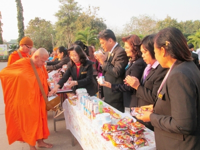 นายวันชาติ อ่วมแจง รองผู้อำนวยการสำนักงานเขตพื้นที่การศึกษามัธยมศึกษา เขต 39 เจ้าหน้าที่ศูนย์ประสานงานจังหวัดอุตรดิตถ์ โรงเรียนในเขตอำเภอเมือง โรงเรียนทองแสนขันวิทยา และโรงเรียนลับแลศรีวิทยา ร่วมตักบาตรข้าวสาร อาหารแห้ง (พระสงฆ์จำนวน 80 รูป) เนื่องในงานวันครู ประจำปี 2557 ณ บริเวณหน้าอาคารภูมิราชภัฎ มหาวิทยาลัยราชภัฎอุตรดิตถ์