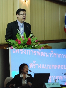 (วันนี้) 24 ส.ค.55 เวลา 9.00 น. โรงแรมน่านเจ้า พิษณุโลก ดร.สมเกียรติ บุญรอด ผู้อำนวยการสำนักงานเขตพื้นที่การศึกษามัธยมศึกษา เขต 39 เป็นประธานเปิดการประชุมปฏิบัติการ จัดทำเครื่องมือวัดและประเมินผลปลายภาคเรียนของศูนย์พัฒนากลุ่มสาระการเรียนรู้ สพม.เขต 39(พิษณุโลก-อุตรดิตถ์) โดยมีนายสุรัตน์ ขวัญบุญจันทร์ ผู้อำนวยการกลุ่มนิเทศติดตามและประเมินผล สพม.เขต 39 กล่าวรายงาน ..สืบเนื่องจากผลการประเมินกลยุทธ์ที่ 1 ของโรงเรียนสังกัดสำนักงานเขตพื้นที่การศึกษามัธยมศึกษา เขต 39 ในปีการศึกษาที่ผ่านมา อยู่ในระดับพอใช้ อาจเนื่องมาจากแบบทดสอบการวัดและประเมินผลที่ไม่สอดคล้องกัน สพม.เขต 39 จึงมีโครงการพัฒนาวิชาการสร้างแบบทดสอบพัฒนาคลังข้อสอบวัดผลสัมฤทธิ์ทางการเรียน 8 กลุ่มสาระการเรียนรู้ ตามมาตรฐานกลาง Test Blue Print ทั้ง 2 จังหวัด (พิษณุโลก-อุตรดิตถ์) โดยจัดทำตามสาระมาตรฐานและตัวชี้วัดของสำนักงานเขตพื้นที่การศึกษา ให้โรงเรียนนำไปจัดการเรียนการสอนในระดับชั้นที่กำหนด และนำข้อสอบกลางไปสอบปลายภาคเรียน พร้อมวัดผล-ประเมินผลในทิศทางเดียวกัน เพื่อพัฒนาคุณภาพและยกระดับผลสัมฤทธิ์ทางการเรียน ให้บรรลุเป้าหมายการศึกษาตามนโยบายการขับเคลื่อนกลยุทธ์ จากสำนักงานคณะกรรมการการศึกษาขั้นพื้นฐาน กระทรวงศึกษาธิการ <ภาพข่าวเพิ่มติมที่เว็บ www.obec.go.th/ภาคเหนือ และ Facebook สพม พิษณุโลก อุตรดิตถ์ // พรทิพย์ เทศแจ่ม : ภาพ ข่าว