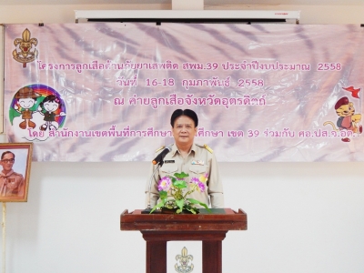 หัวข้อข่าว : นายวีระชัย ภู่เพียงใจ รองผู้ว่าราชการจังหวัดอุตรดิตถ์ เป็นประธานในพิธีเปิดโครงการลูกเสือต้านภัยยาเสพติด สพม.39 ประจำปีงบประมาณ 2558