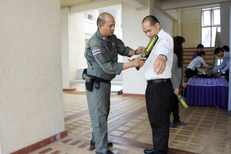 วันนี้ ที่โรงเรียนพิษณุโลกพิทยาคม ซึ่งเป็นสนามสอบตำแหน่งผู้บริหารสถานศึกษา นายกิตติพงศ์ พิพัฒน์ศิวพงศ์ ผู้อำนวยการสำนักงานเขตพื้นที่การศึกษา เขต 39 (พิษณุโลก-อุตรดิตถ์) ได้ข้อความอนุเคราะห์จากเจ้าหน้าที่ตำรวจจากสถานีตำรวจภูธรจังหวัดพิษณุโลก จำนวน 5 นาย พร้อมเครื่องสแกนแบบ walk through จำนวน 1 เครื่อง และ Hand scan จำนวน 4 ตัว และกำลังพลจากกองทัพภาคที่ 3 จำนวน 2 นาย เข้าดูแลความเรียนร้อยของสนามสอบ โดยทำการสแกนผู้เข้าสอบทุกคน พร้อมเก็บอุปกรณ์สื่อสารทุกชนิด เครื่องประดับ ใช้ถุงฝากไว้ที่กรรมการสนามสอบ