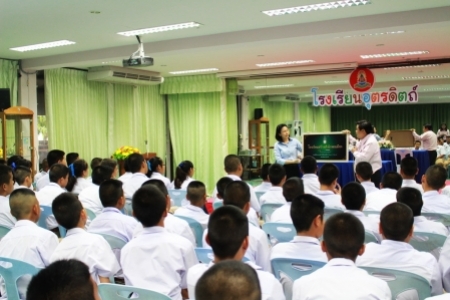 นายวันชาติ อ่วมแจง รองผู้อำนวยการสำนักงานเขตพื้นที่การศึกษามัธยมศึกษา เขต 39 นางภิมุขสุดา ไวยกูล รองผู้อำนวยการโรงเรียนอุตรดิตถ์ พร้อมด้วยคณะครูโรงเรียนอุตรดิตถ์ ให้การต้อนรับคณะกรรมการจากสถาบันพระปกเกล้า ที่มาติดตามโครงการสร้างสำนึกพลเมือง ซึ่งสำนักส่งเสริมการเมืองภาคพลเมือง สถาบันพระปกเกล้า ได้จัดอบรมเชิงปฏิบัติการโครงสร้างสำนึกพลเมือง (Project Citizen) ให้กับโรงเรียนระหว่างวันที่ 23 26 มีนามคม 2558 ณ โรงแรมฟรายเดย์ จังหวัดอุตรดิตถ์ เพื่อเป็นการแลกเปลี่ยนประสบการณ์ และให้คำปรึกษาร่วมกัน จึงเข้าเยี่ยมคณะครู และนักเรียน ที่นำโครงการสร้างสำนึกพลเมืองไปขยายผลต่อเนื่องในห้องเรียน ซึ่งทางโรงเรียนได้นำนักเรียนชั้นมัธยมศึกษาปีที่ 1/3 , 2/1 และ 4/12 เข้าร่วมกิจกรรม ในวันอังคารที่ 14 กรกฎาคม 2558 ณ ห้องประชุม TO BE NUMBER ONE อาคาร 3 :ขอขอบคุณเครือข่ายประชาสัมพันธ์โรงเรียนอุตรดิตถ์: ภาพ/ข่าว