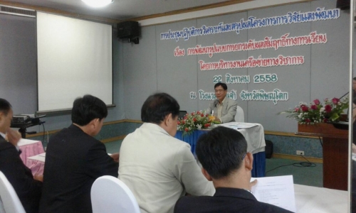ดร.กิตติพงศ์ พิพัฒน์ศิวพงศ์ ผอ.สพม.39 ประธานประชุมวิเคราะห์และสรุปผลโครงการการวิจัยแลพัฒนา"การพัฒนารูปแบบการยกระดับผลสัมฤทธิ์ทางการเรียนโดยการบริหารงานเครือข่ายทางวิชาการ" ณ โรงแรมน่านเจ้า จังหวัดพิษณุโลก